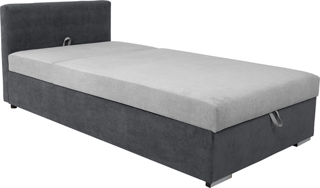 Dagbädd med förvaringsutrymme, inbyggd sänggavel och ställbar lutning på huvudände. Manuell mekanism, ingen strömförsörjning behövs.