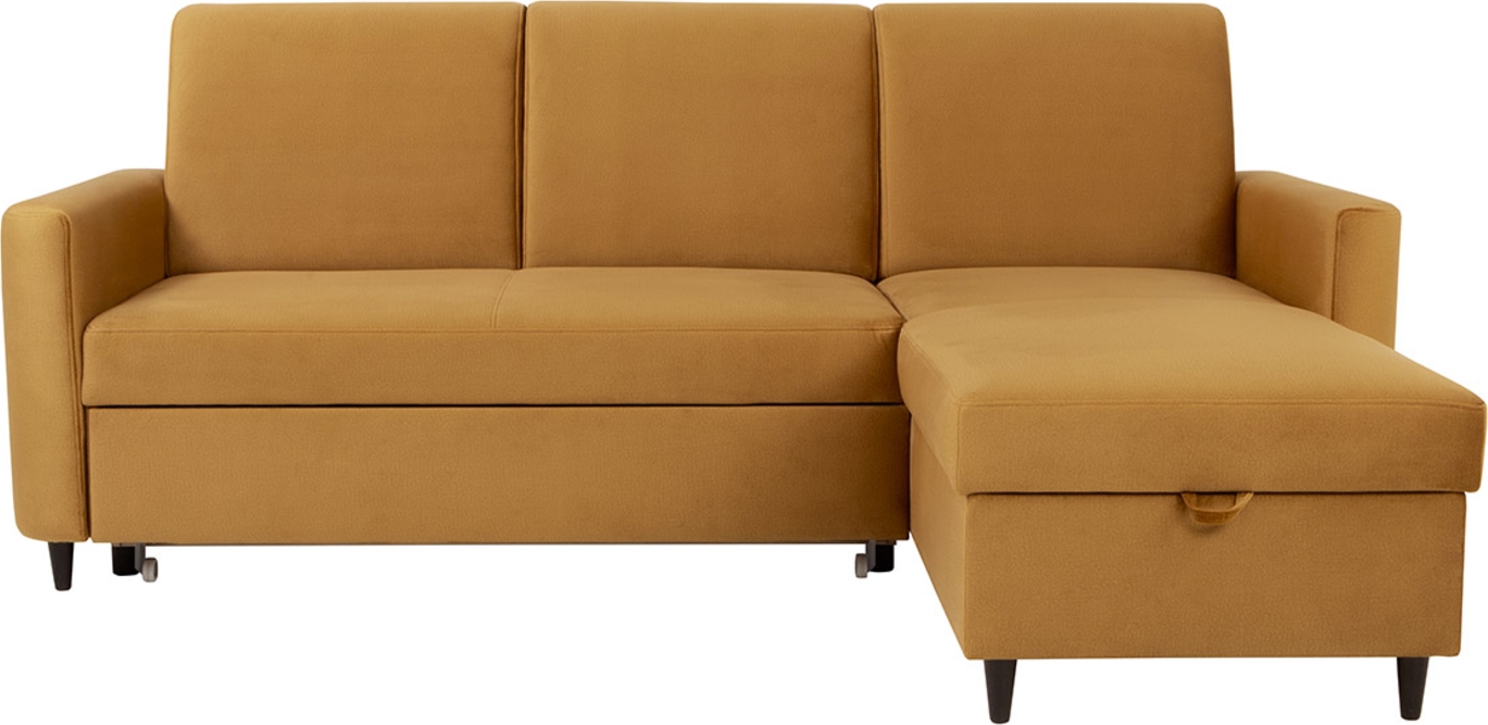 Divansoffa med bäddfunktion och förvaringsutrymme. Divanens placering väljs vid montering.