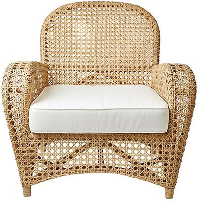 Pampig fåtölj i naturfärgad rotting inklusive tjock sittdyna för god komfort.