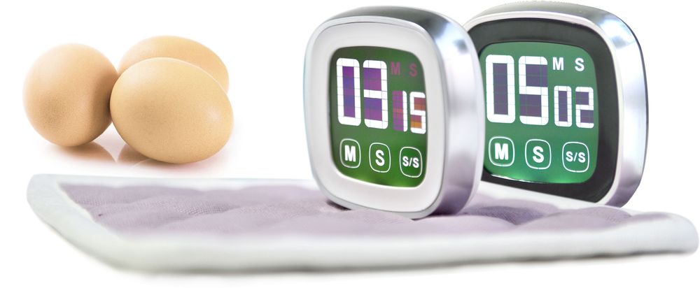 Nätt timer i vitt och svart där du smidigt kan ta tiden vid exempelvis matlagning. Timern är av plast.