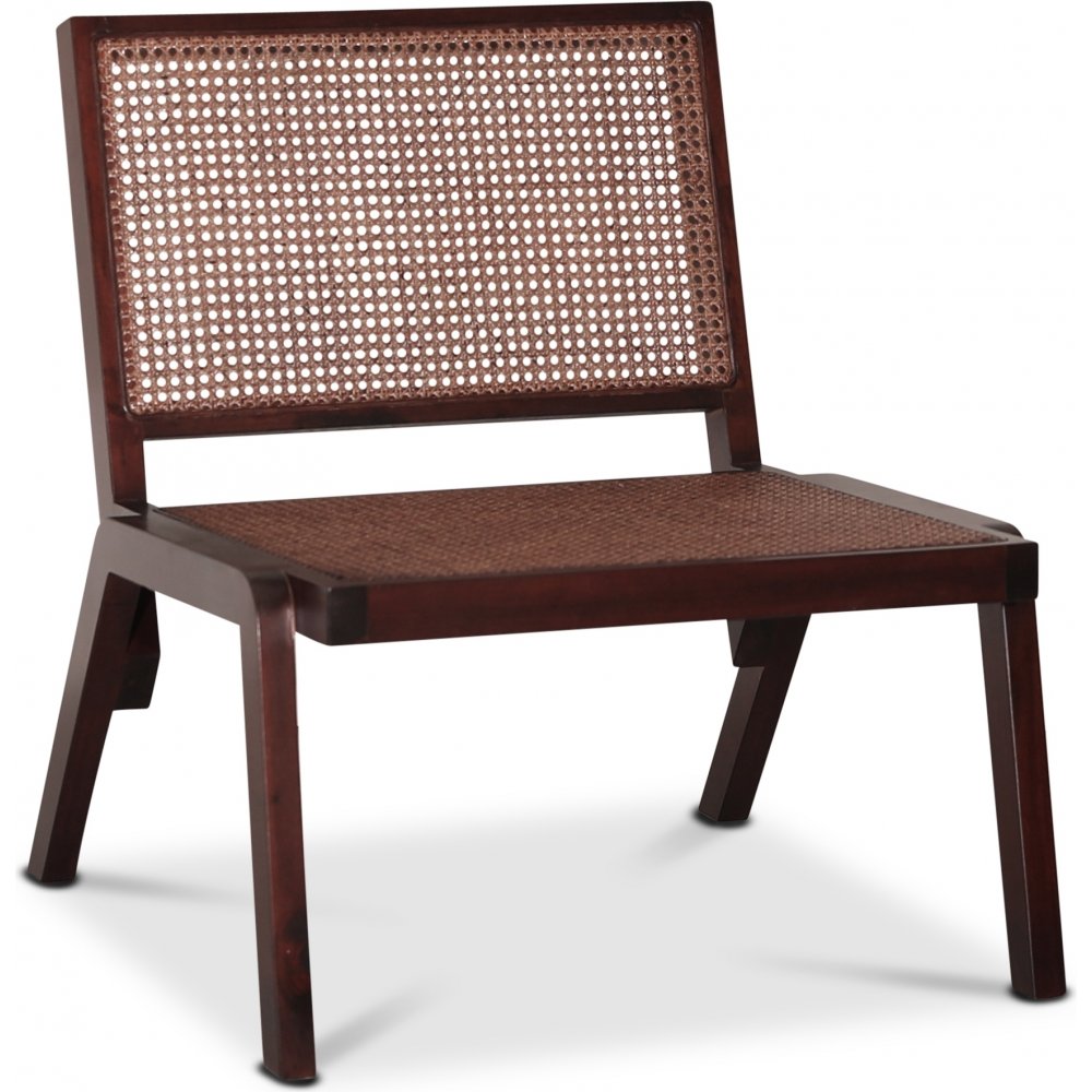 Rizz loungestol i mahogny med sits och rygg i naturlig rotting.
