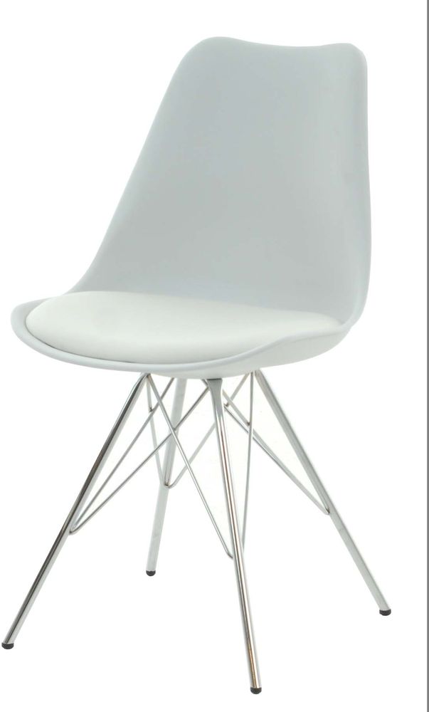 Modern stol i vit PP/PU med kromat underrede i metall.