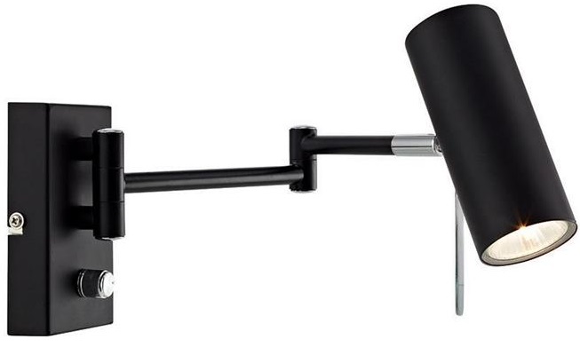 Vägglampa Roma med en stilren design. Tillverkad i svart metall med detaljer i krom och ställbart lamphuvud. 2 meter sladd. Strömbrytare i form av en dimmer som sitter monterad på lampans väggfäste. GU10 halogenlampa tillämpas. Lampan monteras lätt på plats och passar perfekt in på flera olika platser i hushållet.