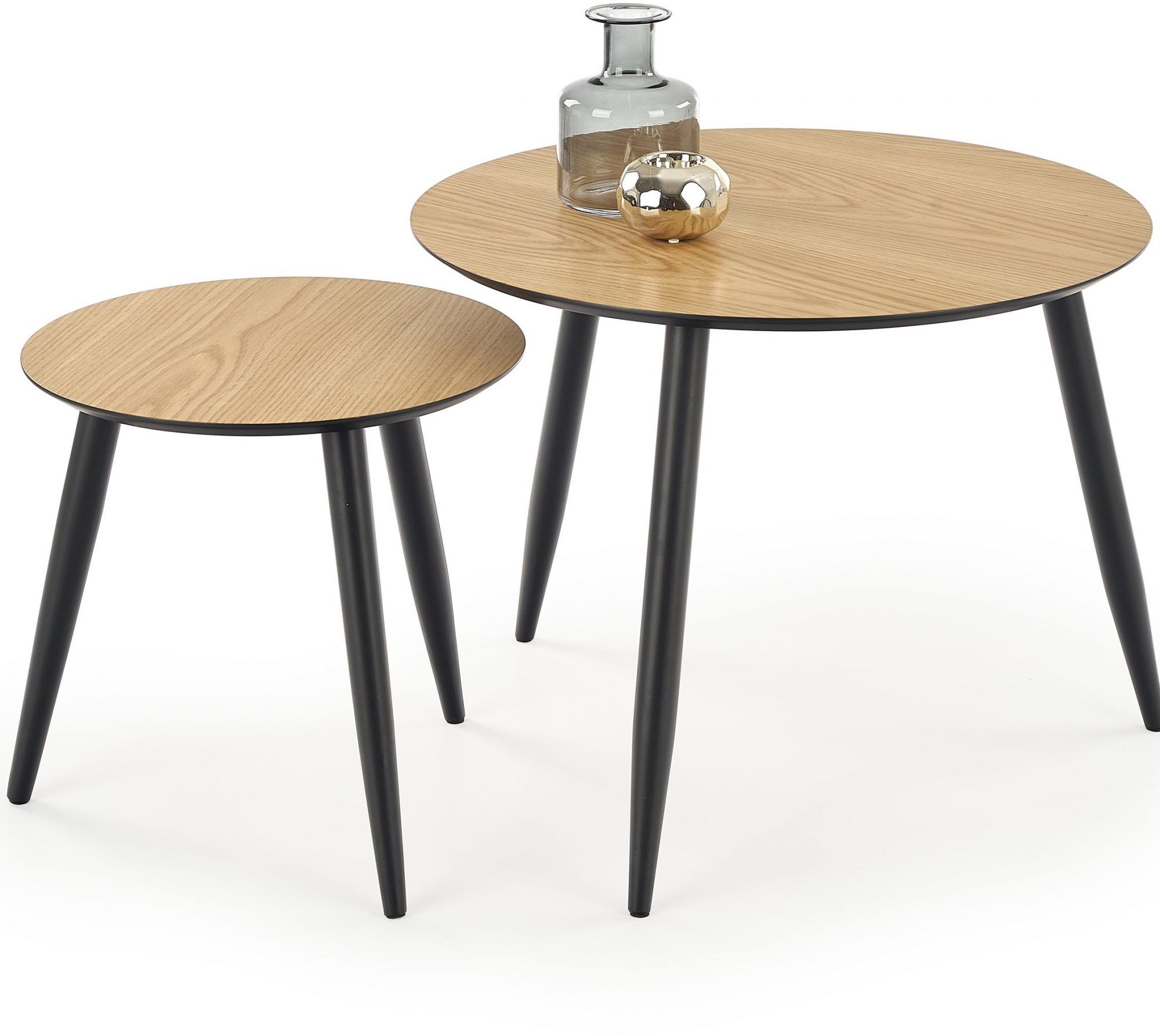 Ett par snygga satsbord med en stilren design. Bordsskivorna är tillverkade av MDF med ett härligt fanér och underredet är av pulverlackerad metall.