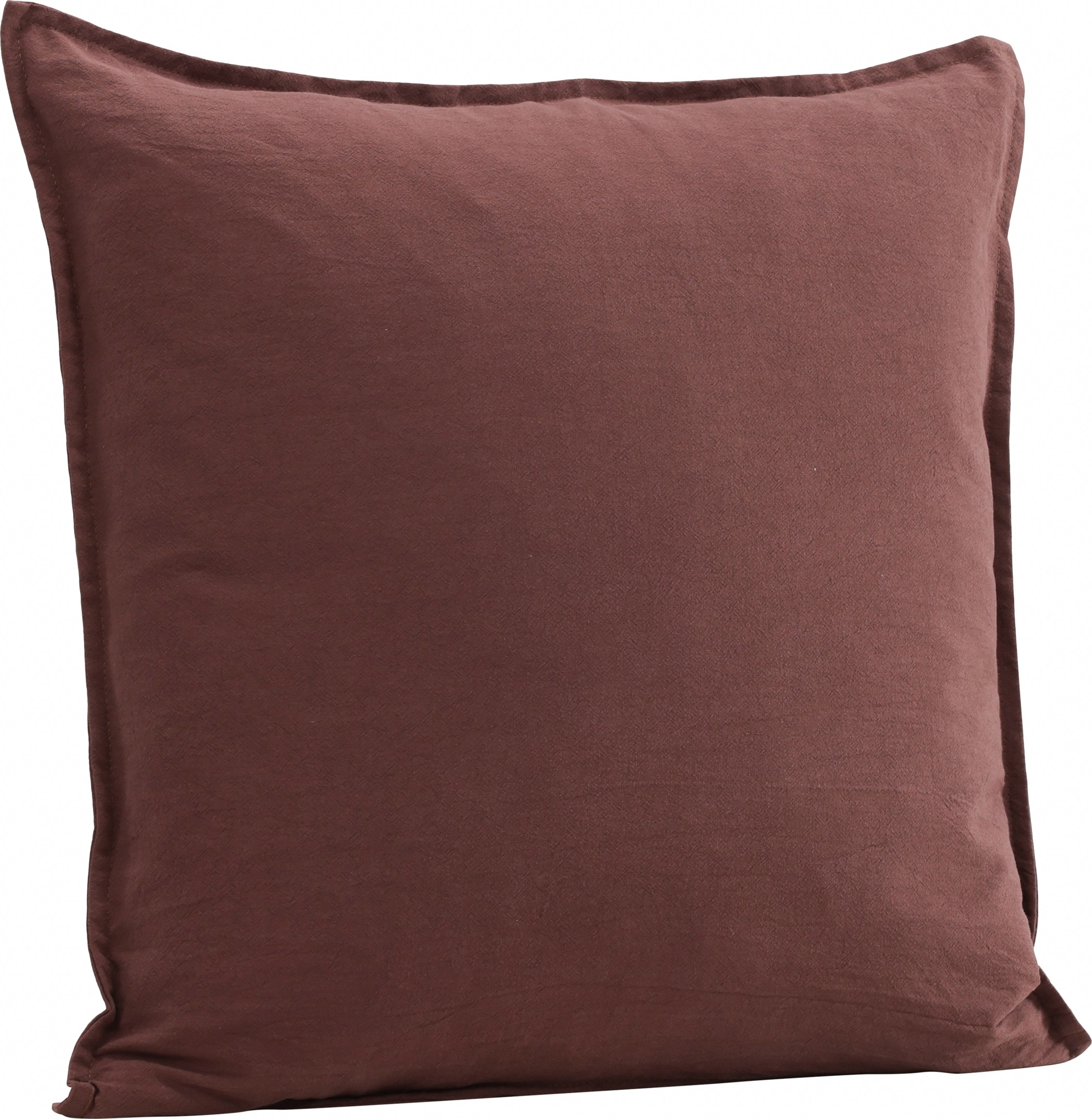 Värm upp atmosfären i rummet med trivsamma kuddar i en jordnära brun kulör och följsamt bomullstyg. Kuddfodralet har en diskret dragkedja på baksidan och en passpoalkant i samma tyg.