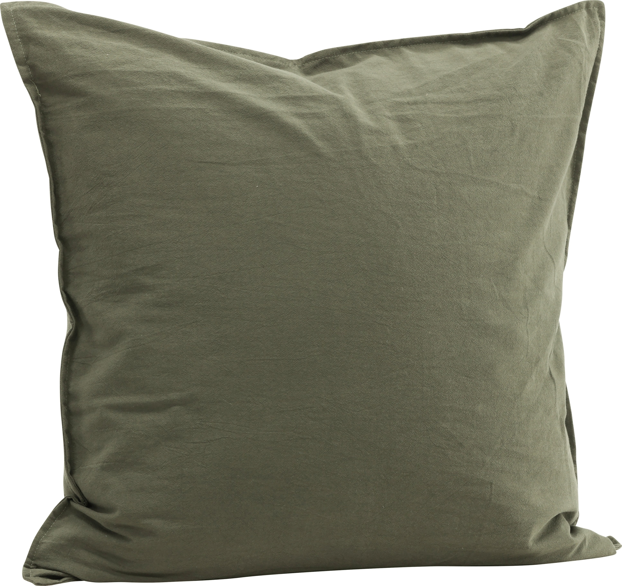 Värm upp atmosfären i rummet med trivsamma kuddar i en skogsnära grön kulör och följsamt bomullstyg. Kuddfodralet har en diskret dragkedja på baksidan och en passpoalkant i samma tyg.