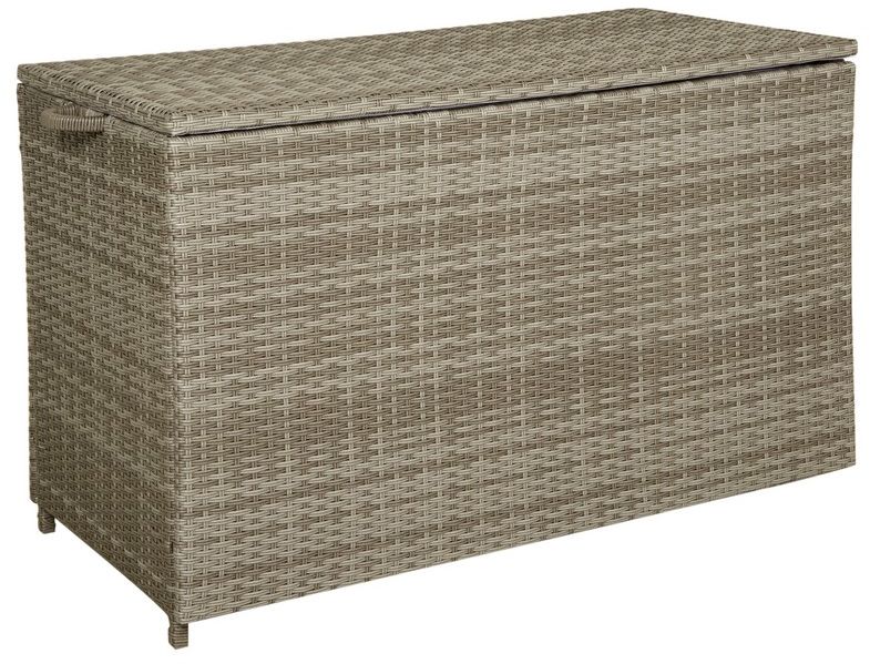 Dynlåda i ljusgrå konstrotting till uteplatsen. Denna låda kan vara ett bra komplement till våra Rosario soffgrupper. Här kan exempelvis dynor förvaras på ett behändigt och snyggt sätt.