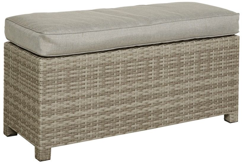 Fotpall i ljusgrå konstrotting till uteplatsen. Denna pall kan vara ett bra komplement till våra Rosario soffgrupper. Inklusive gråbeige dyna.