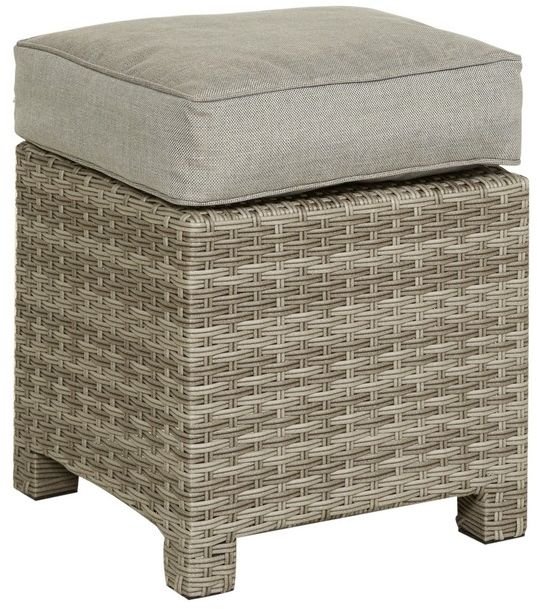 Fotpall i ljusgrå konstrotting till uteplatsen. Denna pall kan vara ett bra komplement till våra Rosario soffgrupper. Inklusive gråbeige dyna. Dynan är ca 10 cm.