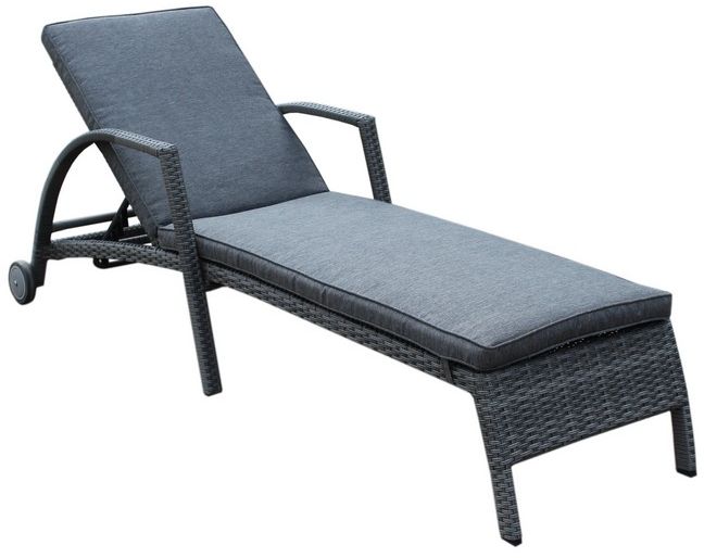 Rosario solsäng med ram i aluminum klädd med ljusgrå konstrotting. En däckstol som kan komma väl till pass på uteplatsen, terrassen soliga dagar. Inklusive gråbeige dyna.