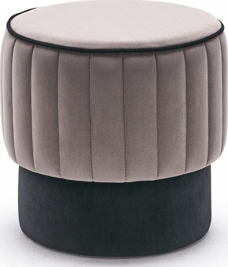 Sittpuff av trä. Klädsel av polyester och sammet.