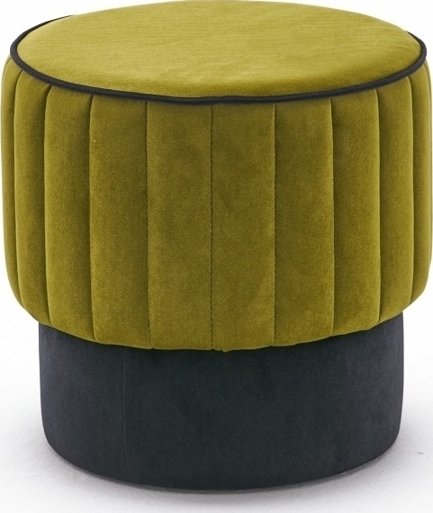 Sittpuff av trä. Klädsel av polyester och sammet.