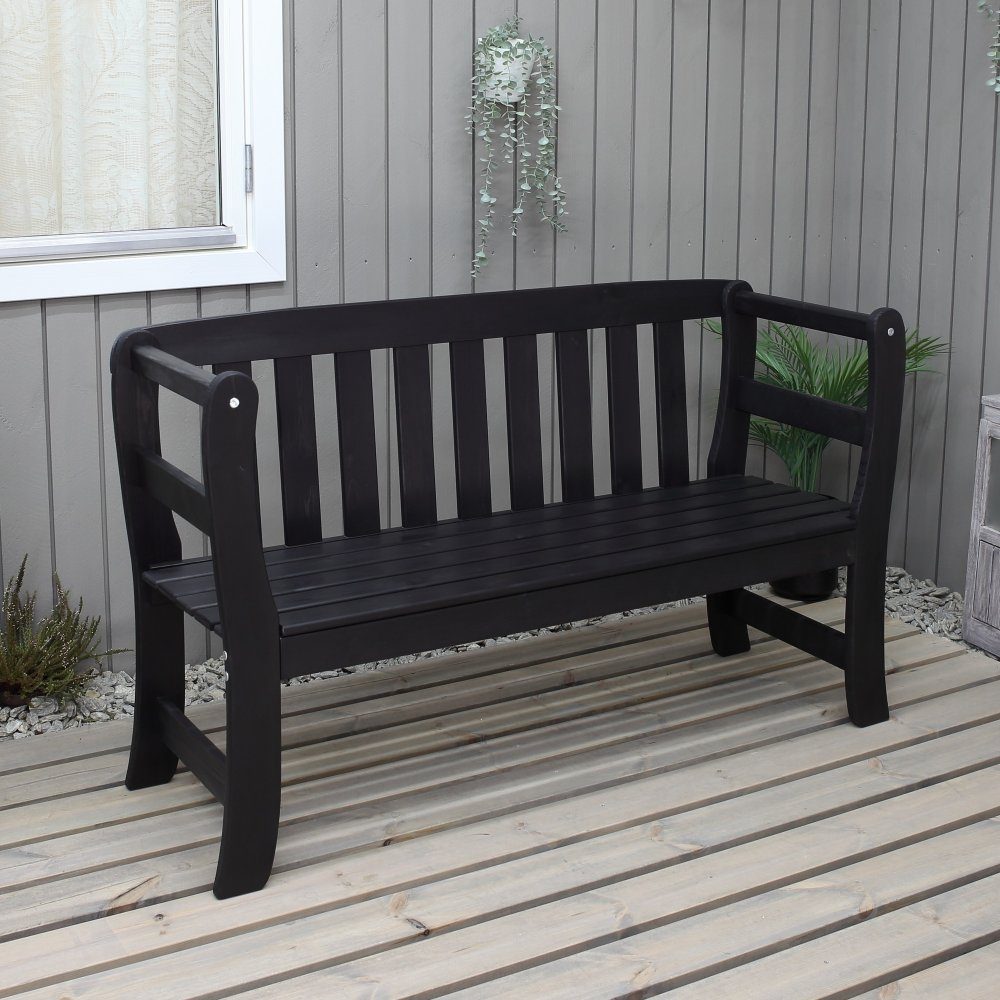 Nätt vit träbänk som gör sig bra på de flesta uteplatser, terrasser och balkonger.