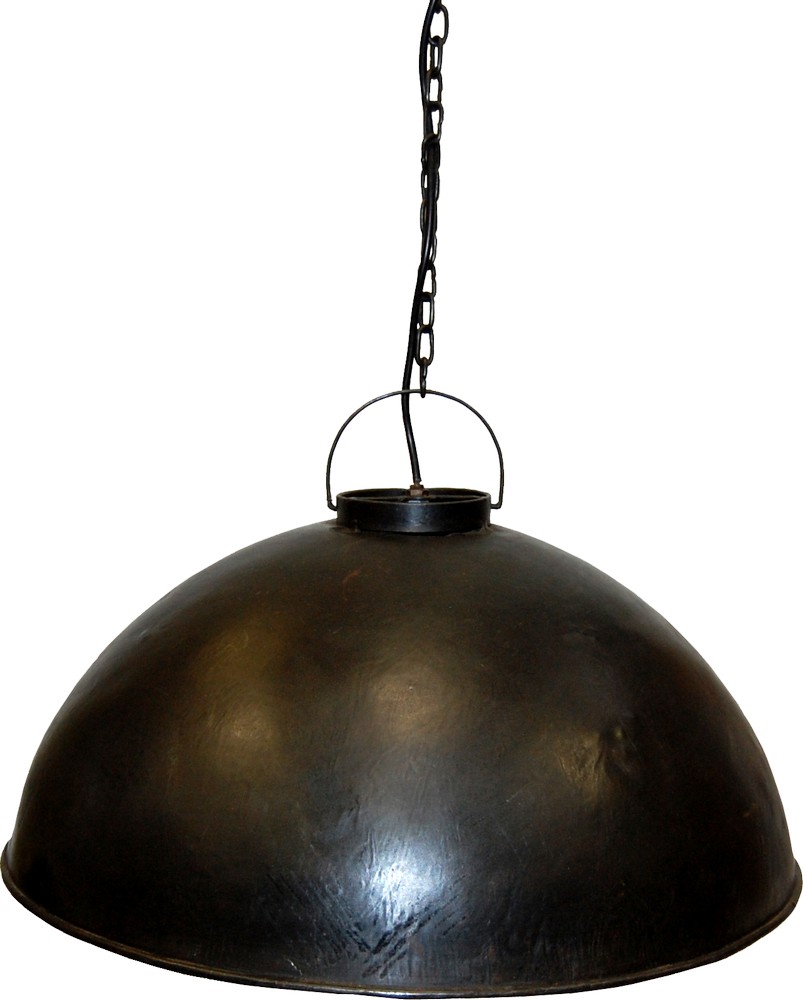 Taklampa i vintage med stor skärm i svart metall med kedja för upphängning.
