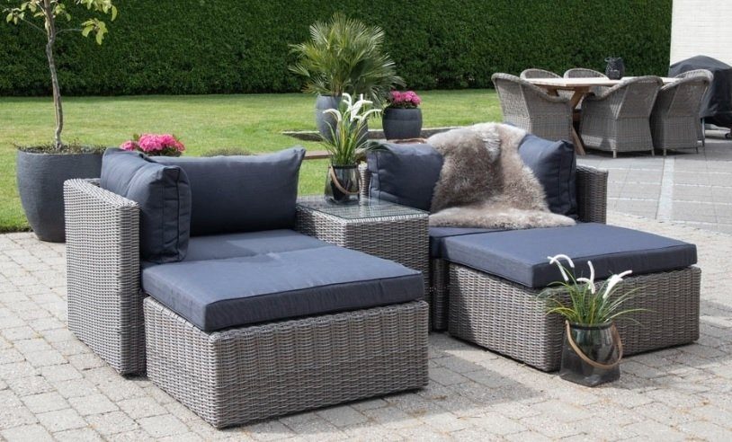 Modulsoffa i grå kubu med antracitgrå dynor. Bygg soffgruppen i olika kombinationer med de medföljande delarna.