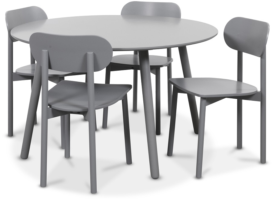 Rosvik matgrupp grått runt bord med 4 st Grå Alvaro matstolar