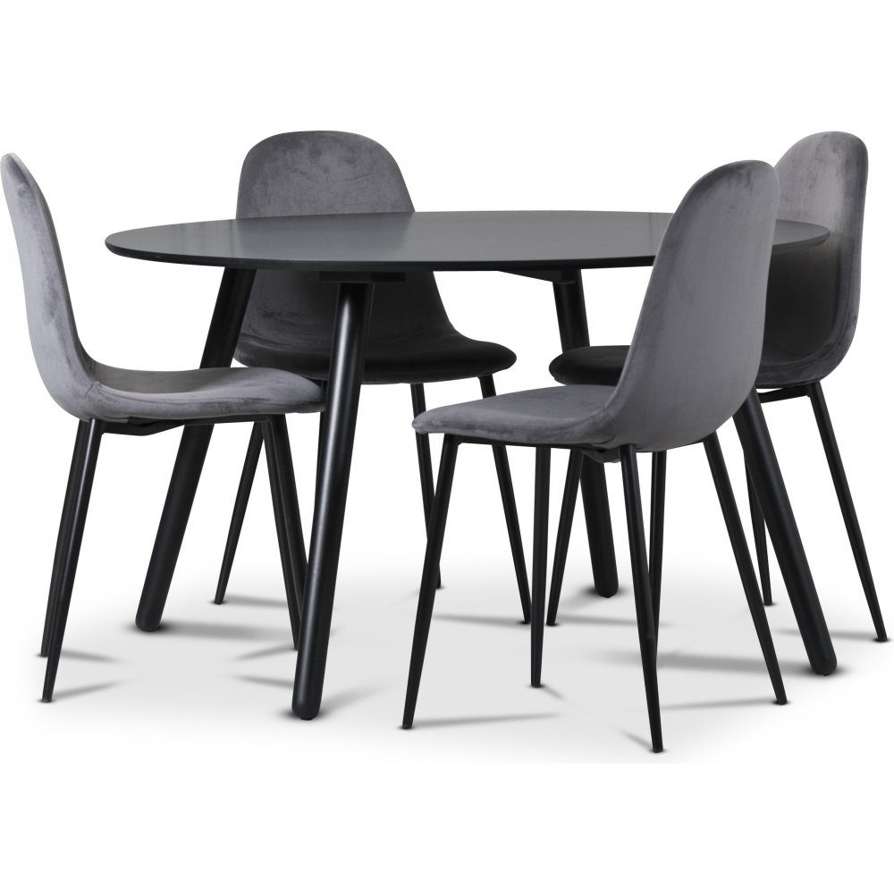 Rosvik matgrupp, matbord med 4 st Carisma sammetsstolar - Grå/Svart: