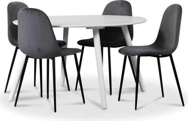 Rosvik matgrupp, matbord med 4 st Carisma sammetsstolar - Vit/Grå