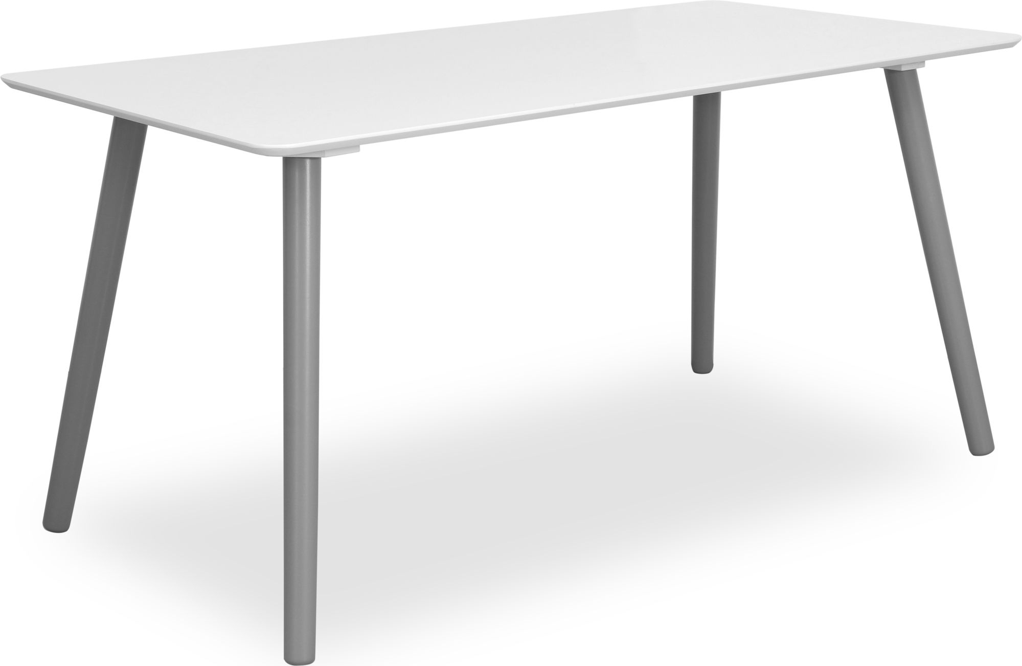 Ett vitlackerat matbord med tidsenliga runda grå ben. Detta bord passar in i de flesta miljöer med sitt stilrena formspråk. Köksbordet passar väldigt bra till våra pinnstolar.