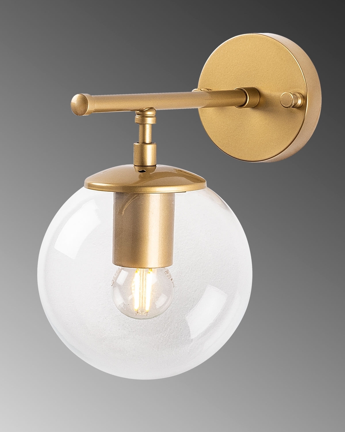 Vägglampa av metall och glas. Ljuskälla ingår ej.