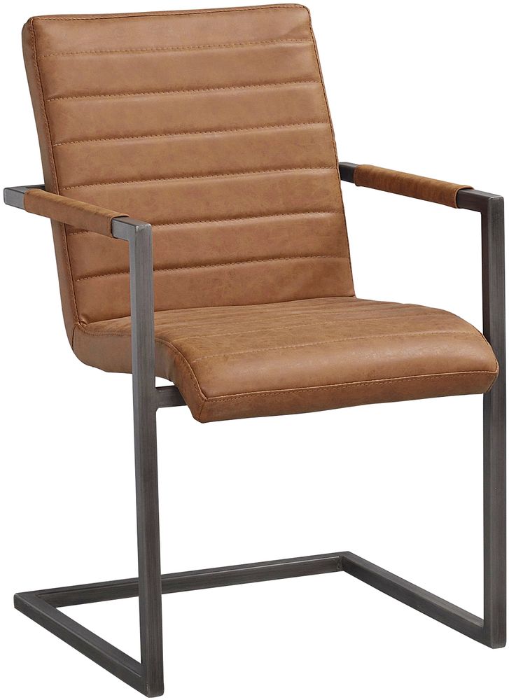 Clive karmstol med cognacsfärgat konstläder och ram i metall. Riktig stil-ikon med skön svikt och komfort.