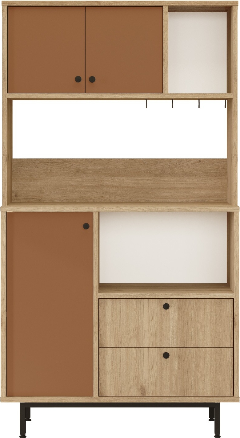 Köksskåp av melaminbelagd spånskiva med ben av metall.