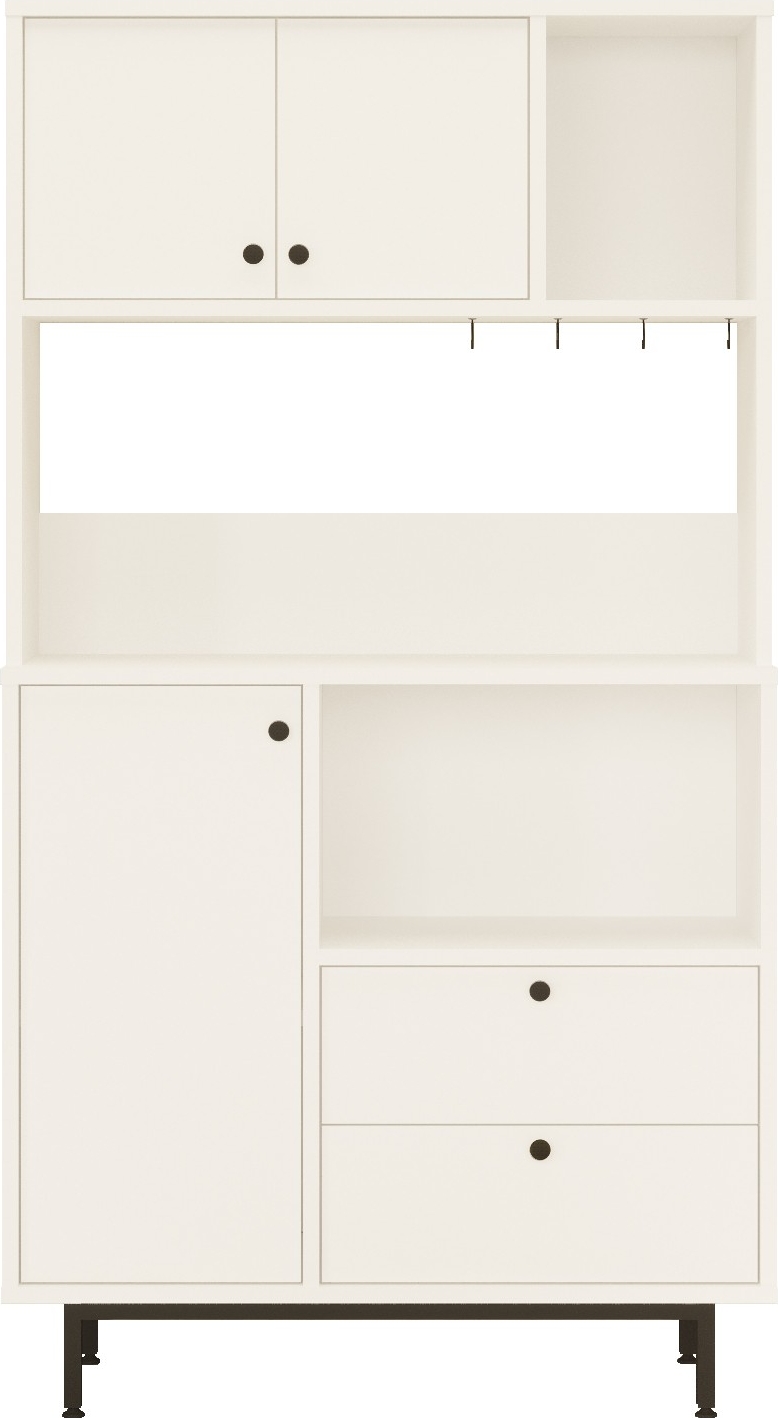 Köksskåp av melaminbelagd spånskiva med ben av metall.