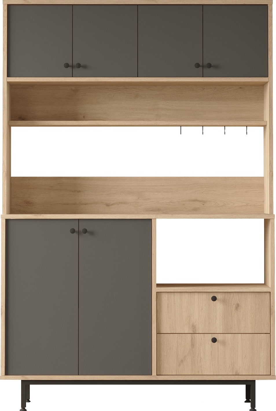 Köksskåp av melaminbelagd spånskiva med ben av metall.