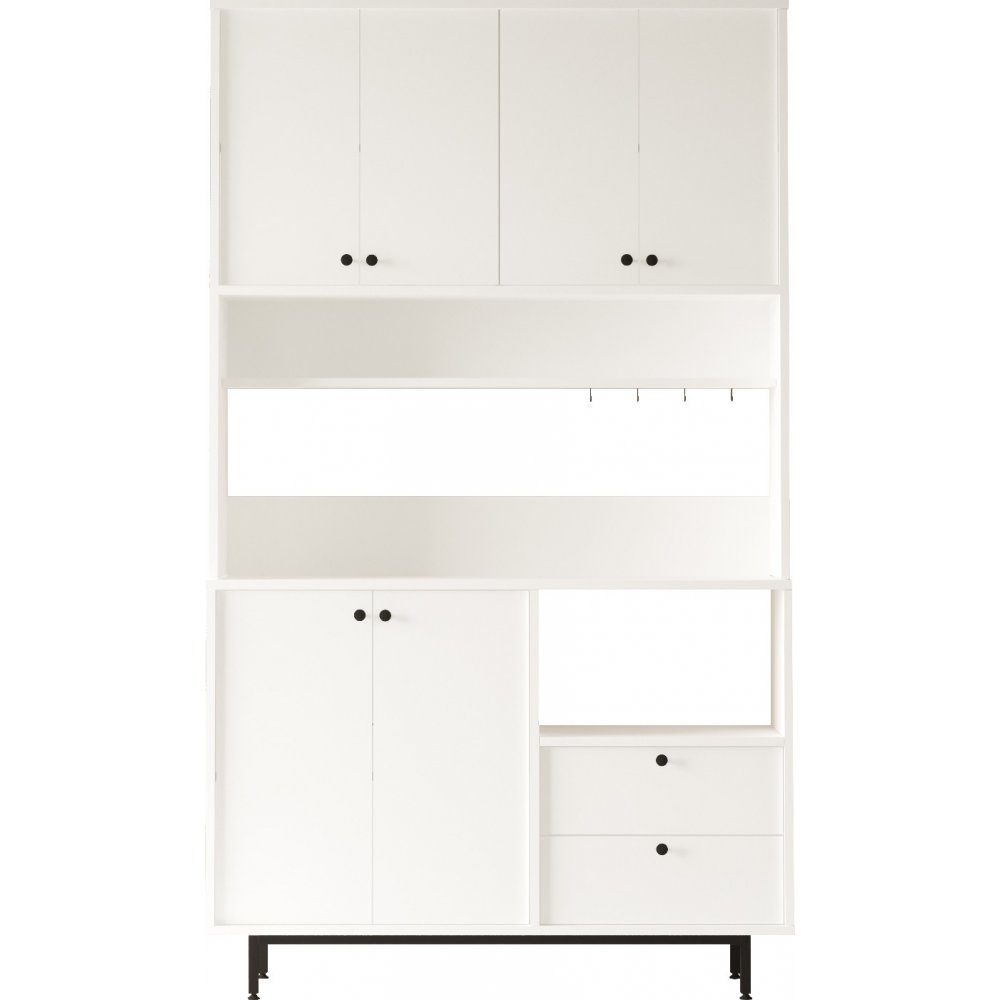 Köksskåp av melaminbelagd spånskiva med ben av metall.