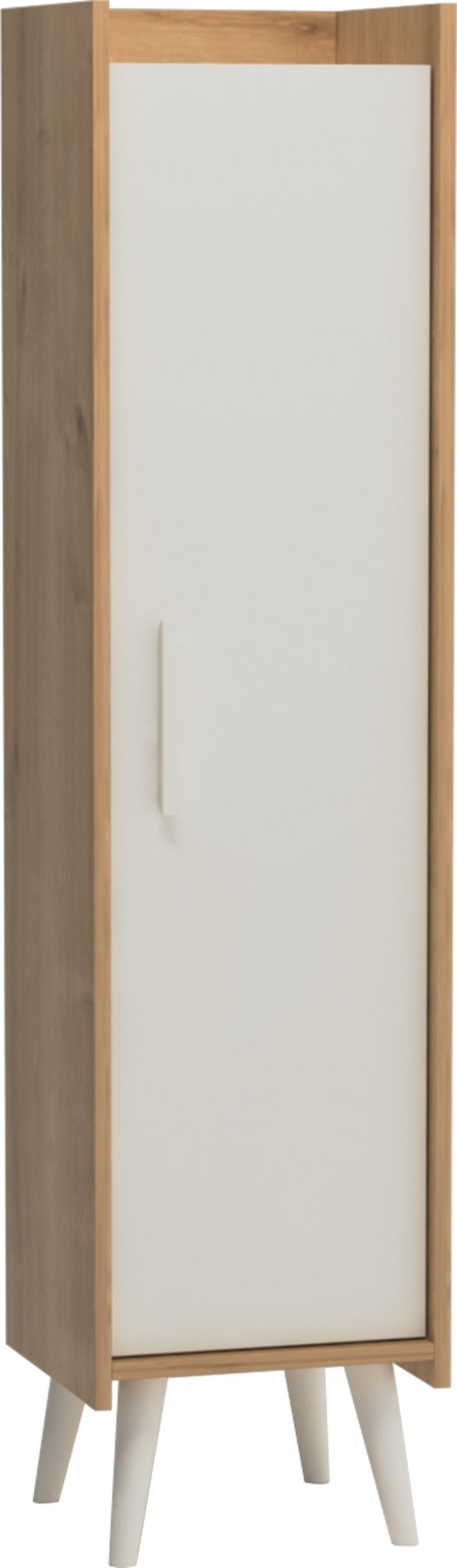 Skåp av trä med ben av plast.