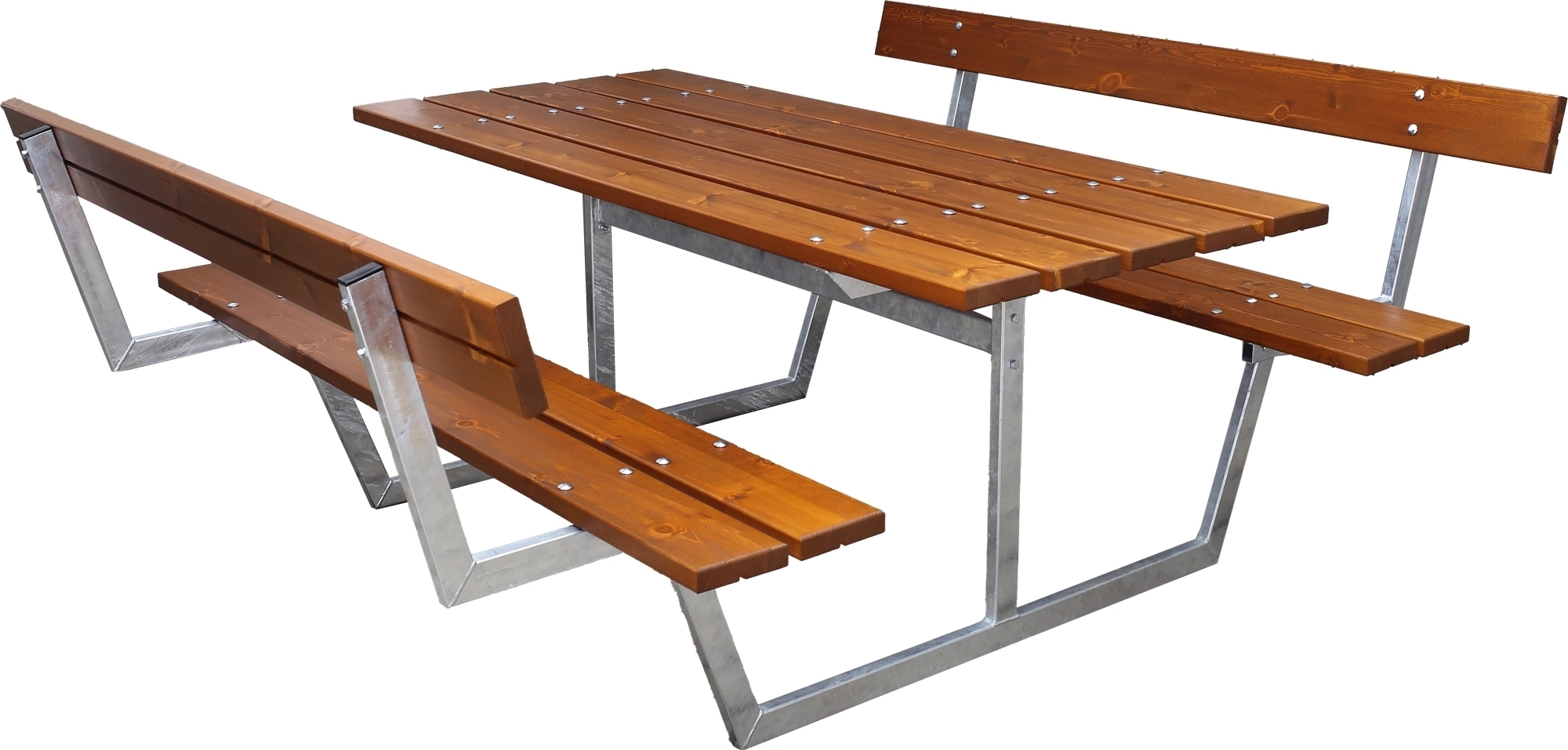 Rejäl konstruktion, kraftiga rör och brädor. Ett bänkbord som kräver minimalt med underhåll. Picknickbord Rustik passar i de tuffaste miljöer, samtidigt som den är lätt att underhålla. Bord med fasta bänkar i ett och plats för 4 personer. Ett bra val för rastplatser, parker och uteplatser med mycket aktivitet. Levereras omonterad.