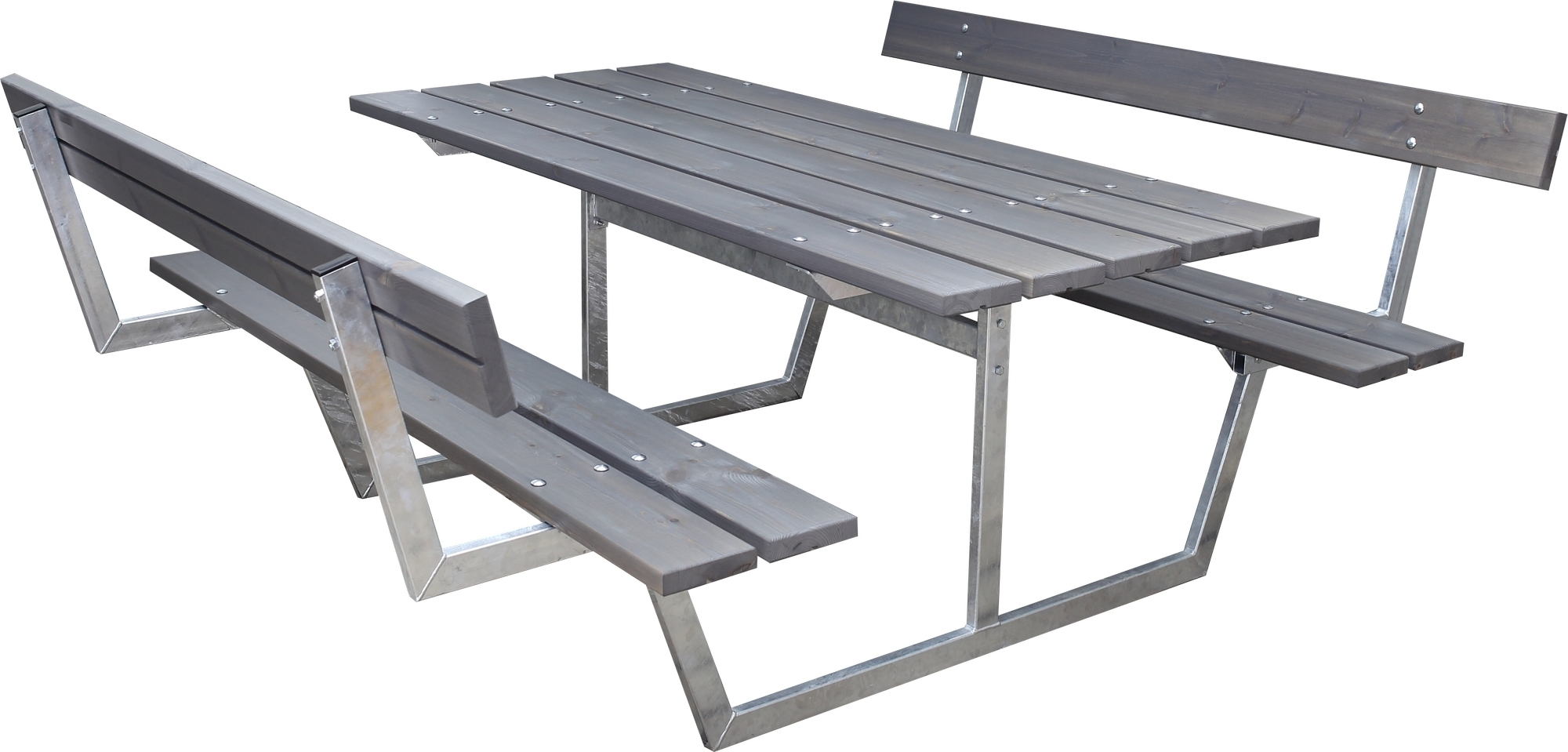Rejäl konstruktion, kraftiga rör och brädor. Ett bänkbord som kräver minimalt med underhåll. Picknickbord Rustik passar i de tuffaste miljöer, samtidigt som den är lätt att underhålla. Bord med fasta bänkar i ett och plats för 4 personer. Ett bra val för rastplatser, parker och uteplatser med mycket aktivitet. Levereras omonterad.