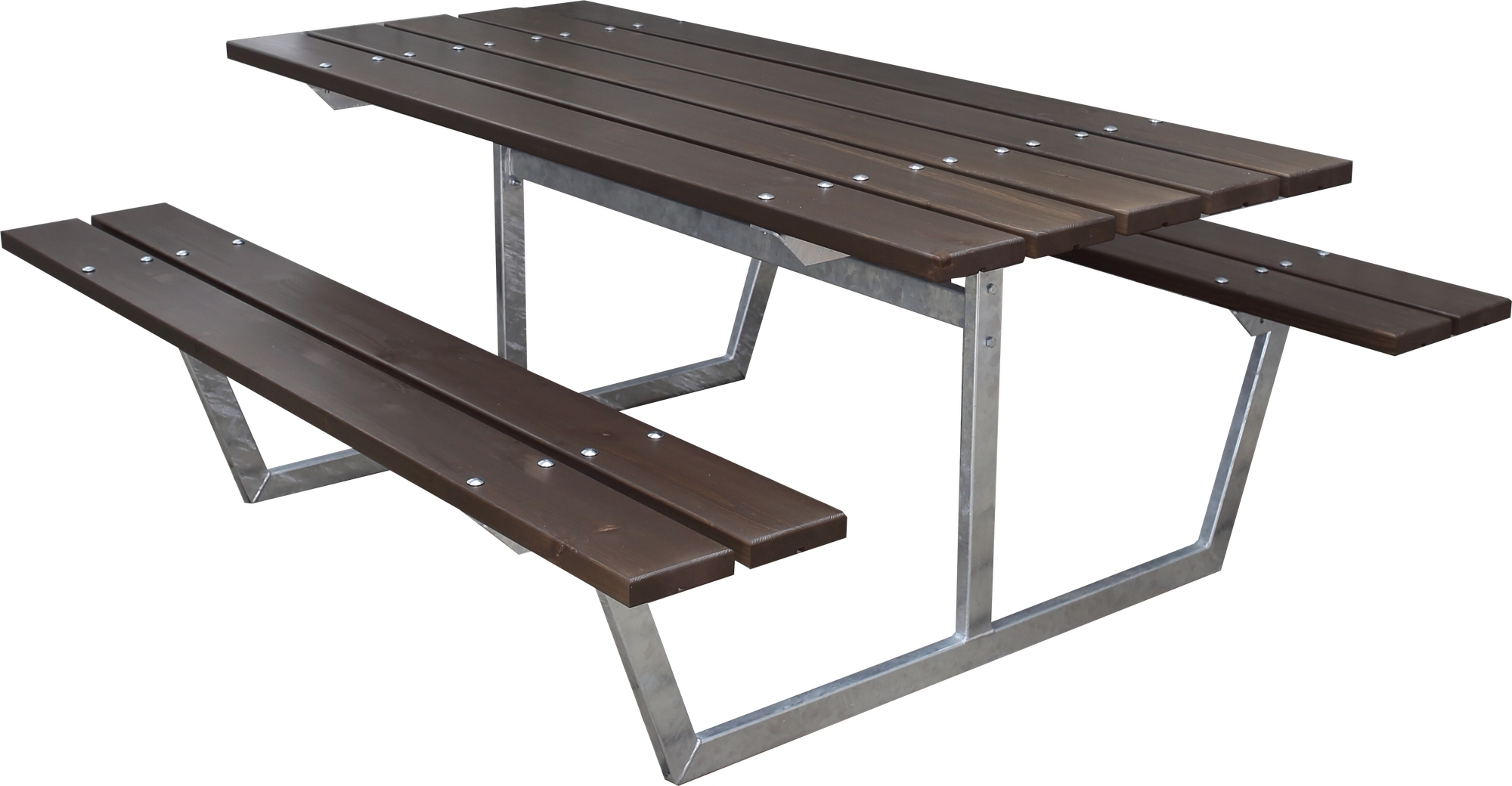 Rejäl konstruktion, kraftiga rör och brädor. Ett bänkbord som kräver minimalt med underhåll. Picknickbord Rustik passar i de tuffaste miljöer, samtidigt som den är lätt att underhålla. Bord med fasta bänkar i ett och plats för 4 personer. Ett bra val för rastplatser, parker och uteplatser med mycket aktivitet. Levereras omonterad.