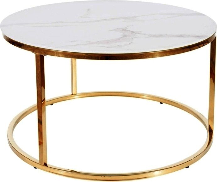 Soffbord av rostfritt stål. Bordsskiva av tempererat glas.