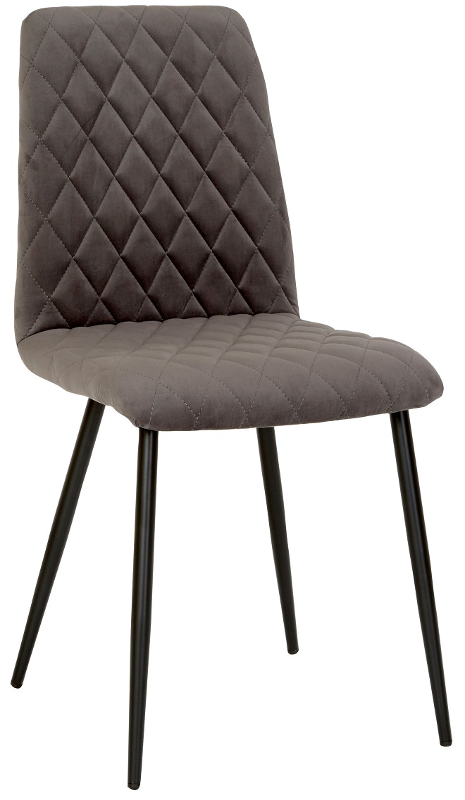 Saint stol i ett stilrent utförande med god sittkomfort. Rutmönstrad klädsel i grått lyxigt sammets tyg med matchande smala svarta stålben.