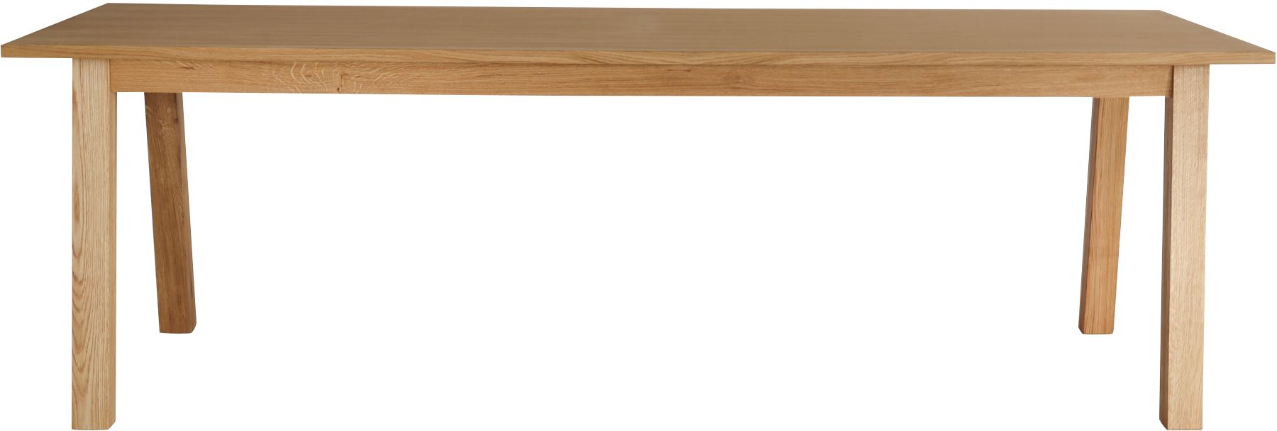 Saltsjö matgrupp, bord på hela 240 cm, perfekt för större middagsbjudningar. Bordet är i oljad ekfaner med matchande ben. Ett klassiskt robust och stilrent bord.
