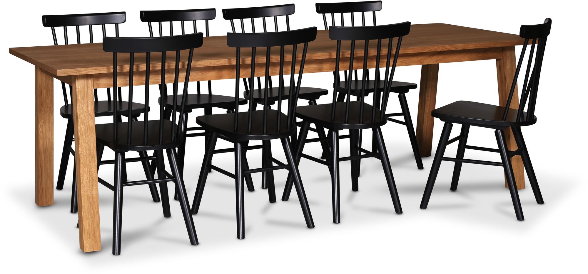 Saltsjö matgrupp 240 cm inkl 8 st svarta Orust pinnstolar - Oljad ekfanér