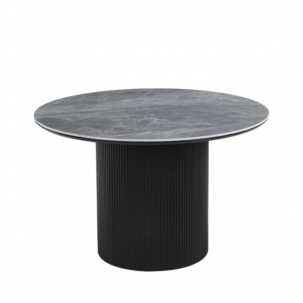 Salvador runt matbord med bordsskiva i grå keramisk tålig sten. Underrede i svartlackat trä. Modernt och tåligt matbord. Matbordet passar för 4 till 5 personer.