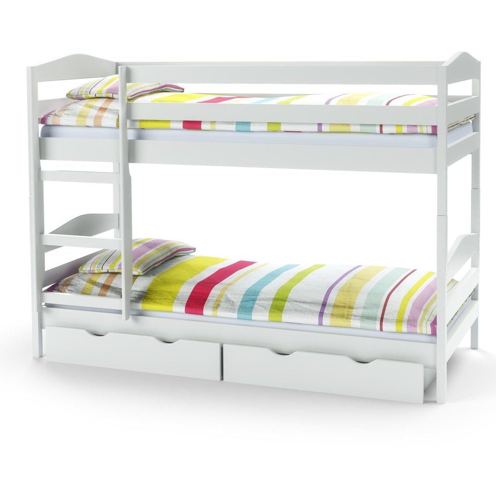 En mysig barnsäng med en klassisk design. Bunkersängen är tillverkad av behandlad furu, rustad med stege och skyddsräcke. Obs, lådorna under sängen ingår inte i köpet.