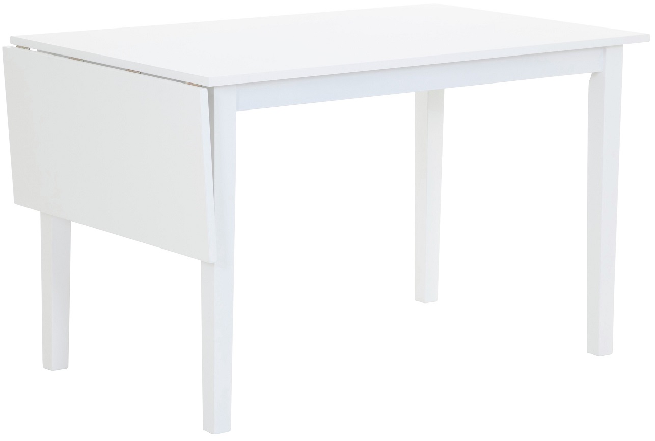Sander matbord med fällklaff i klassisk stil. Bordet är 120 cm långt och med uppfälld klaff blir bordet 155 cm. Ett praktiskt och nätt matbord. Vitlackat bokträ som är ett massivt och hållbart material.