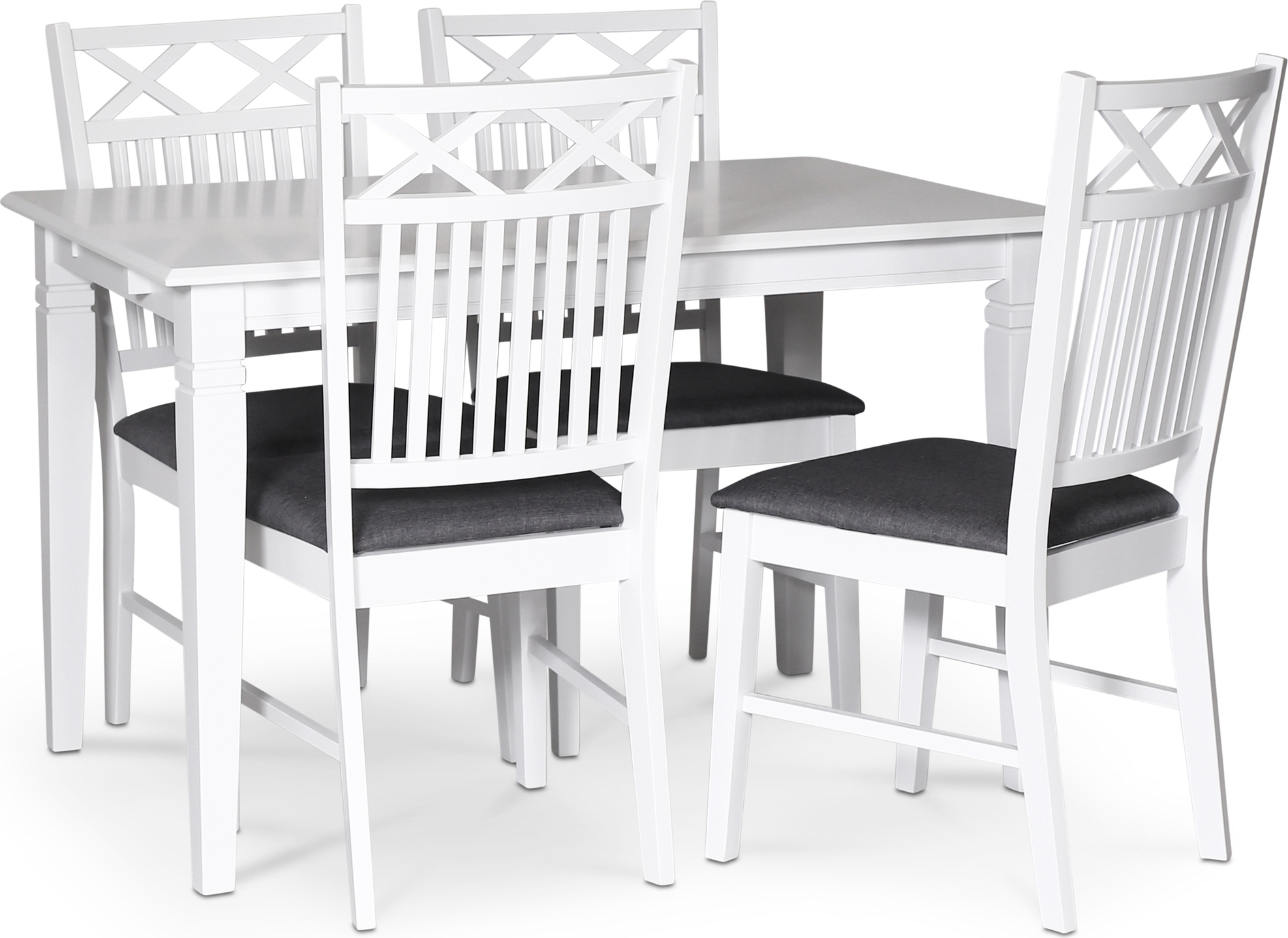 Sandhamn matgrupp Klassiskt utförande. Stilrent matbord 120x80 cm matbord med vitlackade ben och bordsskiva.