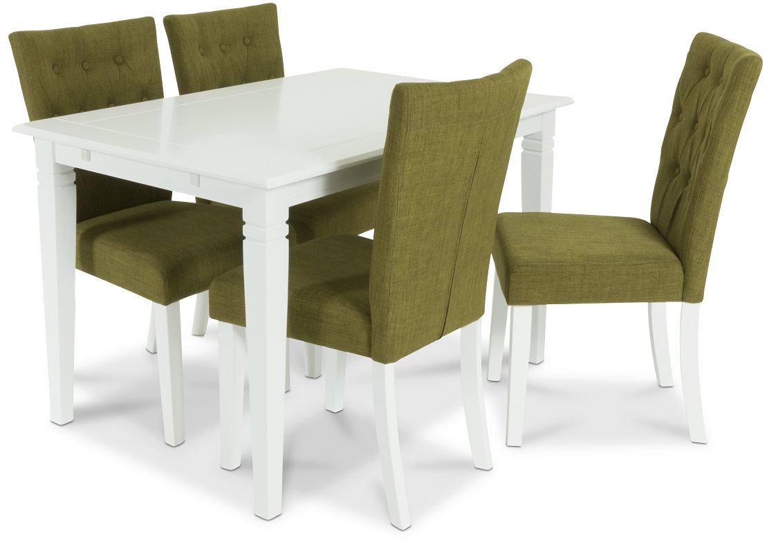 Sandhamn matgrupp 140 cm bord med 4 Crocket stolar i Grönt tyg