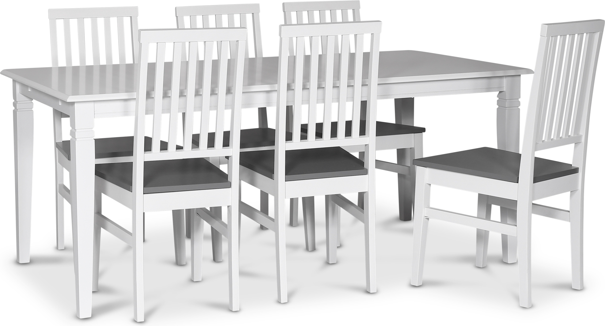 Sandhamn matgrupp Klassiskt utförande. Stilrent matbord 180x95 cm matbord med vitlackade ben och bordsskiva.