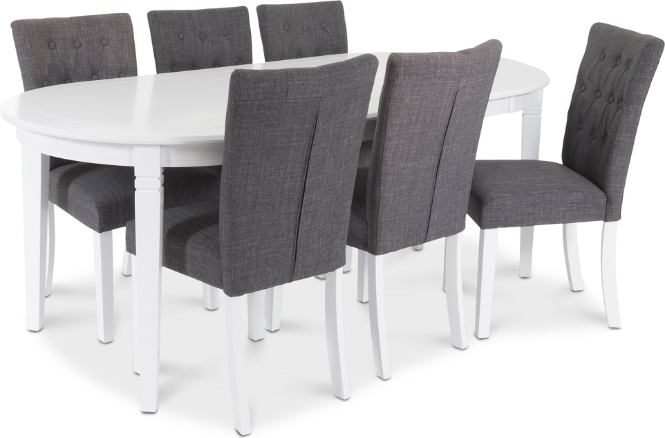 Sandhamn Matgrupp; Ovalt bord med 6 st Crocket stolar i Grått tyg
