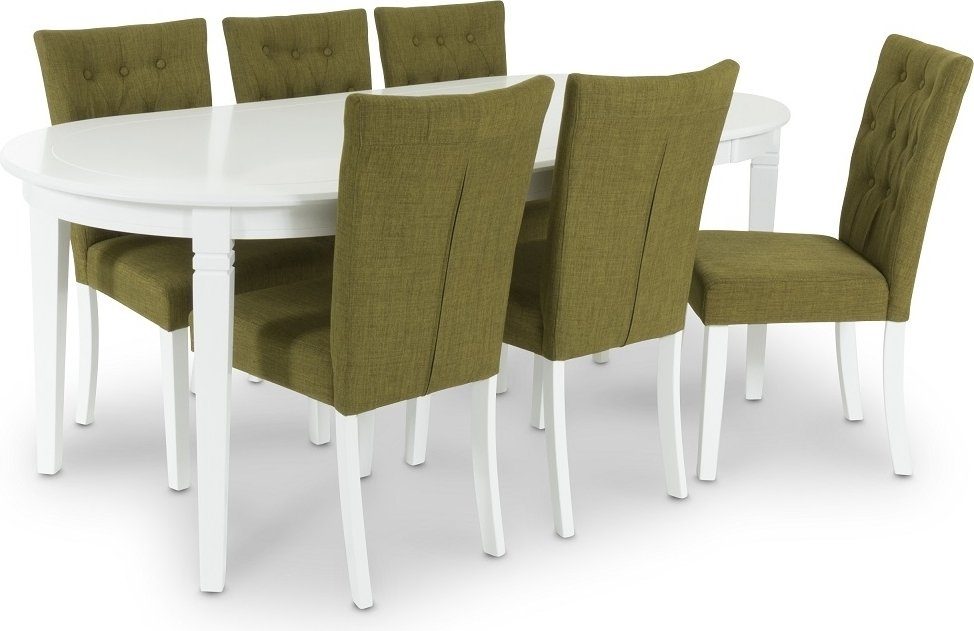 Sandhamn Matgrupp Ovalt bord med 6 st Crocket stolar i Grönt tyg