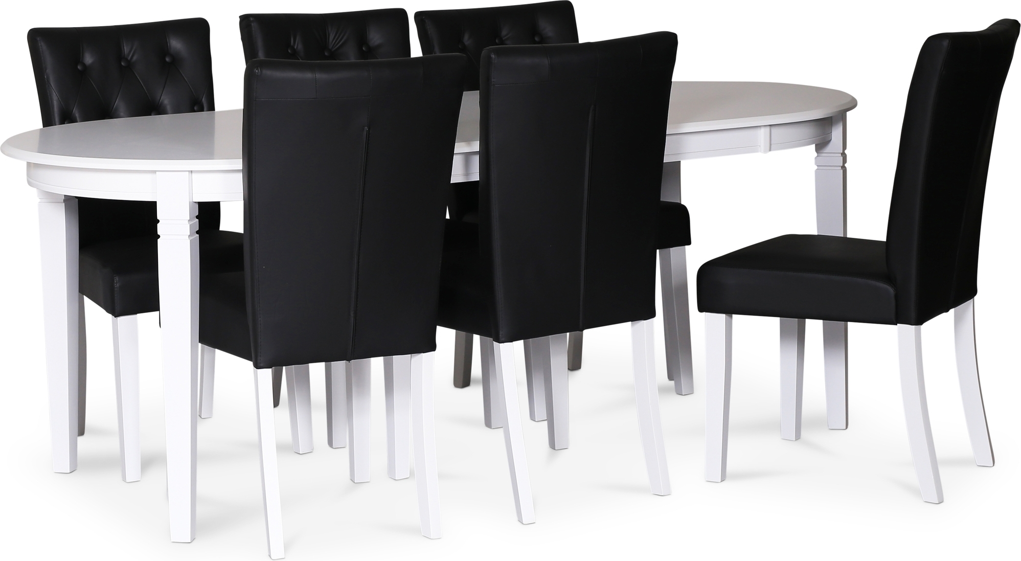 - Sandhamn Matgrupp; Ovalt bord med 6 st Crocket stolar i Svart PU
