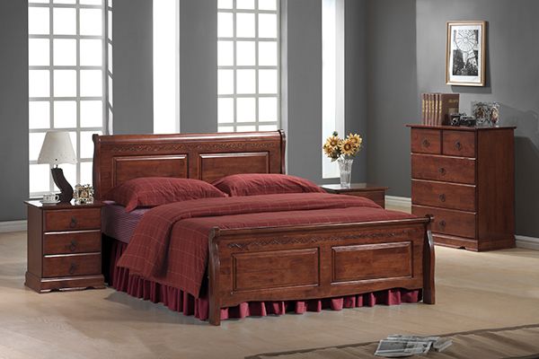 En snygg säng med en elegant design. Sängen är tillverkad av trä och MDF med ett mycket vackert fanér med antik körsbär utförande.
