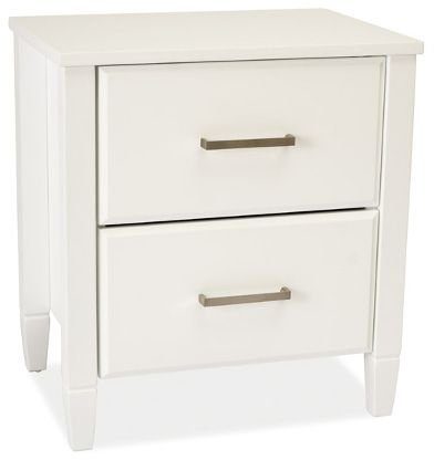 Ett snyggt sängbord med en klassisk design. Sängbordet är tillverkat av vitlackerat trä med detaljer i metall. Rustad med två lådor för diverse förvaring.