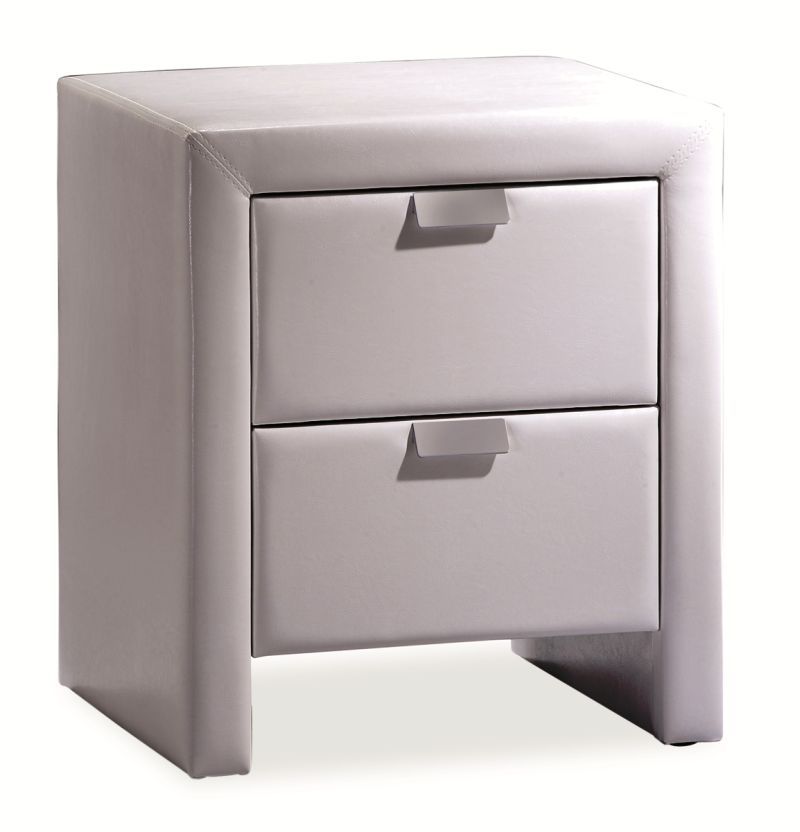Ett snyggt sängbord med en modern design. Sängbordet är tillverkat av MDF och är klädd med ett mycket vackert och behagligt konstläder. Rustad med två lådor för diverse förvaring.