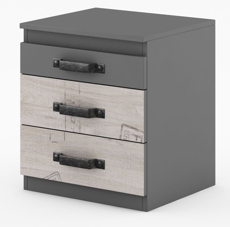Ett snyggt och praktiskt sängbord med en modern design. Tillverkat i MDF med goda förvaringsmöjligheter i form av tre lådor.